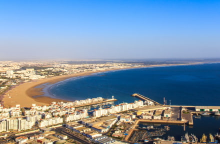 Die ursprüngliche Stadt Agadir wurde 1960 von einem Erdbeben vollständig zerstört. Bis auf Reste der Kasbah auf dem 236 m hohen Hügel von Agadir, gibt es in der Stadt fast keine historischen Gebäude mehr. Die mit vielen Betonbauten wieder aufgebaute Stadt hat ihren Charme nicht bewahren können. Sie ist aber dennoch für Reisende sehr attraktiv, denn der fast 10 km lange Sandstrand und die Strandpromenade der Hafenstadt, sind Treffpunkt für Sonnenhungrige, Partyfreunde und Familien. Von der Kasbah haben Sie einen fantastischen Blick auf das Meer, die gesamte Stadt und traumhafte Sonnenuntergänge. Unterhalb der Kasbah liegt der Fischereihafen mit seinem Fish Market. Er ist Treffpunkt vieler Einheimischer und Sie finden hier ausgezeichnete fangfrische Fischgerichte. Beim Schlendern über den Souk Al Had bekommen Sie einen authentischen Eindruck von einem marokkanischen Markt, mit Düften von orientalischen Gewürzen, frischem Obst, Gemüse und lokalen Produkten. Im Musée Municipal du Patrimoina Amazig d´Agadir entdecken Sie die Kultur der Berber aus der Region mit traditionellen Werkzeugen, Kleidung und vor allem einer großen Schmuckausstellung.