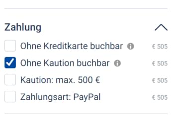 Grundsätzlich empfehlen wir immer die Vollkaskoversicherung ohne Selbstbeteiligung, bei der Sie sogar bei selbstverursachten Schäden nichts zahlen müssen.